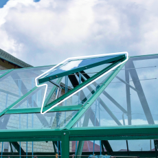 - Две форточки в крыше (форточный блок) — расположение в коньке улучшает естественную вентиляцию, поэтому внутри поддерживается здоровый климат для растений.